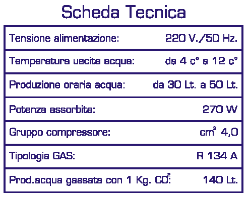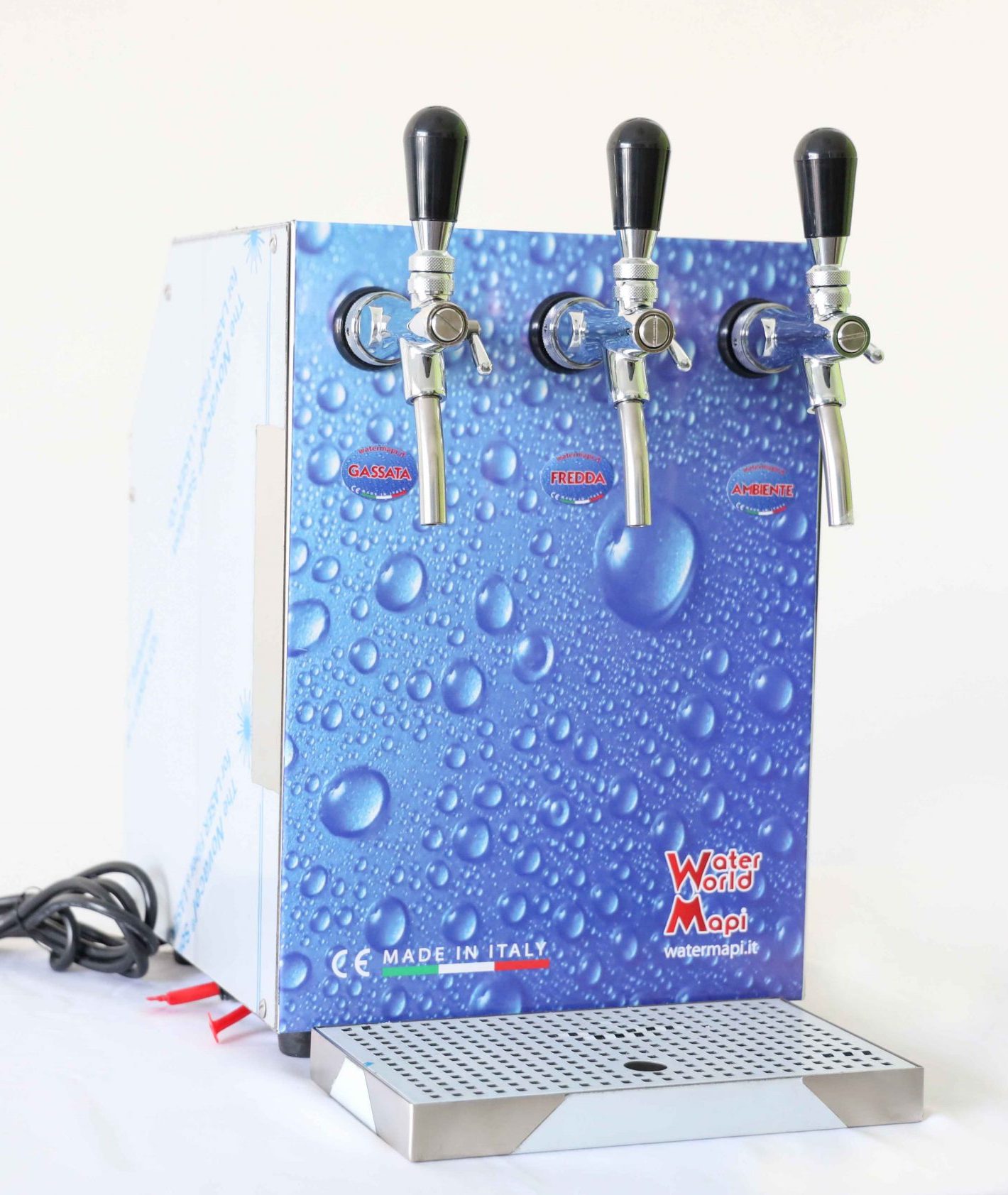 I nostri frigo-gasatori sono capaci di produrre diversi Lt/h d’acqua refrigerata in base alle esigenze ed adatti a più utilizzi, da quello domestico fino alle grandi strutture ricettive passando per ristoranti ed uffici. Sono prodotti artigianali di altissima qualità realizzati interamente in acciaio inox, che consentono di azzerare i costi di fornitura e gestione dell’acqua in bottiglie di plastica, aderendo così ad una politica green e plastic free a favore dell’ambiente. Il montaggio è facilissimo, infatti si tratta di corpi macchina completi ai quali vengono collegati esternamente allaccio idrico con filtro e CO2. In caso di qualsiasi problema o esigenza siamo sempre disponibili ed al servizio del cliente.